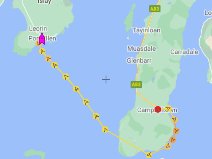 5 May 2021 Sailed from Port Ellen to Loch Tarbert Slight problem with the tides through the Sound of Islay as can be seen from the speed...